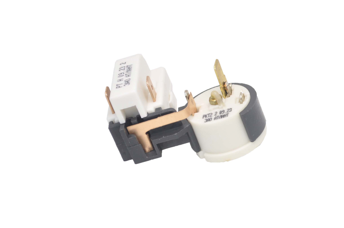 Пусковое реле компрессора холодильника Атлант, Минск, РКТ-2. Реле для компрессоров мощностью 120-175 Вт. Температура срабатывания 130±10°С. Настройка по температуре срабатывания 120-140°С. Настройка по температуре возврата 60-75°С. Ток срабатывания при t=80°С - 1,8 А. Максимальный ток срабатывания при t=25°С - 6,3 А. Срабатывает реле в интервале от 6 до 15 сек.