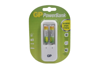 Зарядное устройство "GP Batteries" для зарядки никель-металлогидридных аккумуляторов. Заряжает аккумуляторы АА и ААА любой мощности. Два независимых канала позволяют заряжать 1 или 2 аккумулятора типа AA или AAA одновременно. В комплект входят: 2 аккумулятора типа AAA (650 mAh).