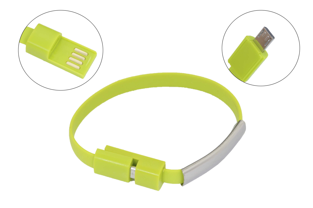 Кабель Gmii USB 2.0 type A - micro USB, в виде браслета, длина22,5см, зеленый цвет, плоский