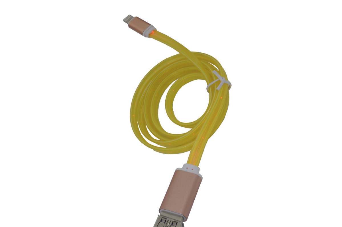 Кабель Gmii USB 2.0 type A - Apple Lightning, 8 пин, плоский, ПВХ-оплетка, длина 1 метр, цв. желтый, с подсветкой