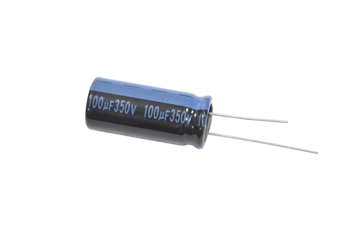 Конденсатор электролитический общего применения Jamicon. Серия ТК. Емкость: 100 мкФ. Макс. Напряжение: 350В. Макс. Температура: 105С, рабочая пониженная температура – не ниже -55°С. Ток утечки 4 мкА. Допустимое отклонение емкости ±20%. Размер: 16х36, гибкие выводы