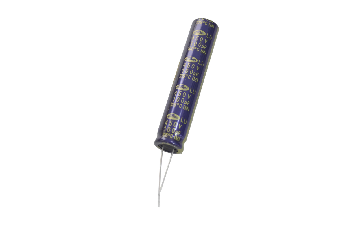 Конденсатор электролитический для ЖК-телевизоров Samwha серии LU. Емкость: 100мкФ, номинальное напряжение: 450В, температура: 105С. Размер: 13*61