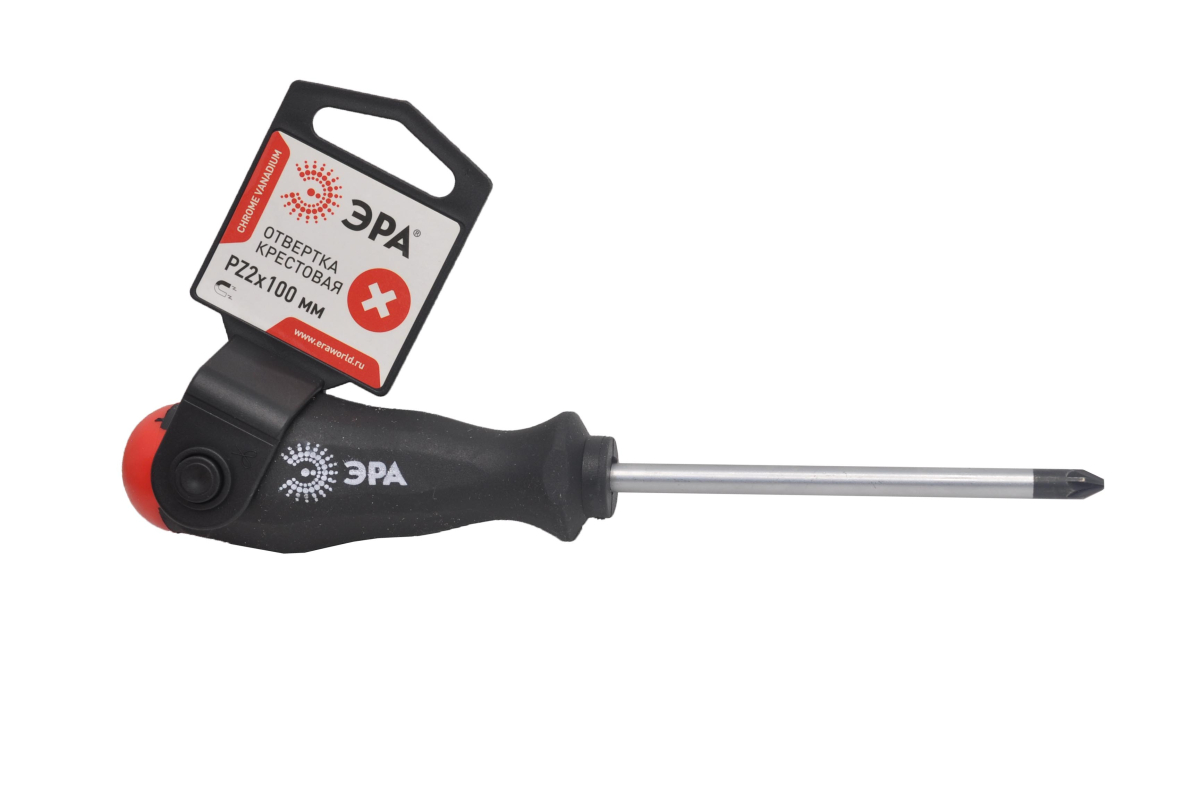 Крестовая отвертка ЭРА 2х100 мм со стержнем из хром-ванадиевой стали, эргономичной двухкомпонентной рукояткой и магнитным наконечником. Тип данной крестовой отвертки - PZ. Длина стержня отвертки - 100 мм.