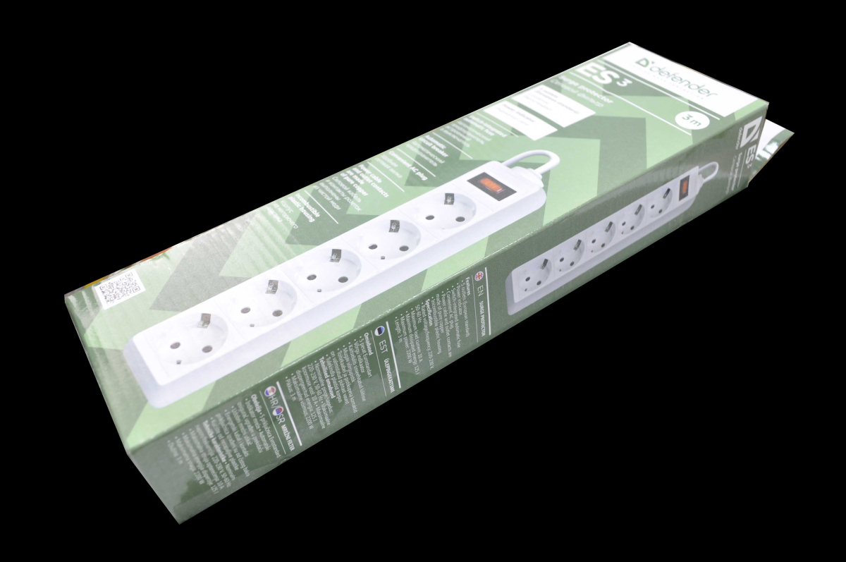 1182518 Сетевой фильтр Defender ES 5 220V 5 евророзеток 3.0м белый (99482)
