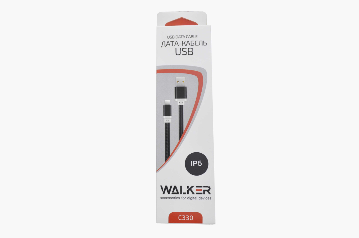 13593 Кабель Walker C330 для iPhone 5/5S/6/6+/6S/6S+/7/7+8/8 в матерчатой обмотке, плоский, черный
