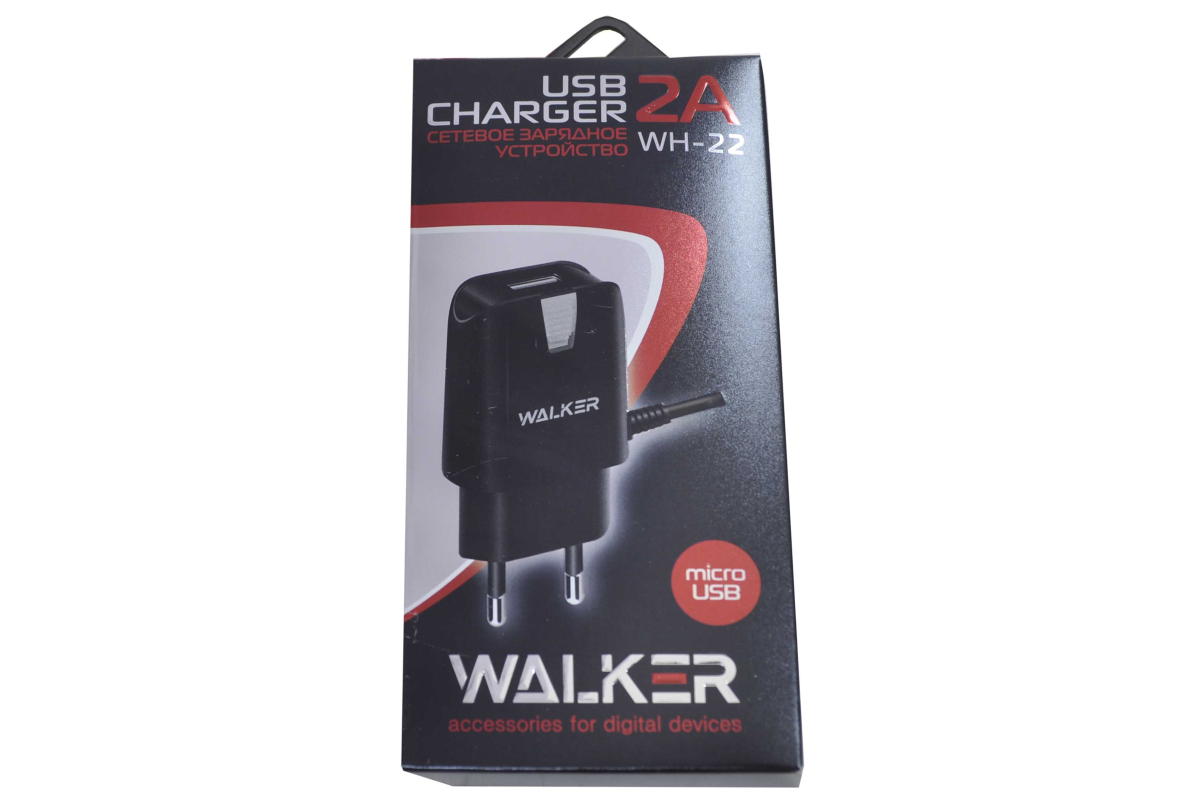 14536 Сетевое зарядное устройство Walker WH-22 microUSB 2.0А, черное