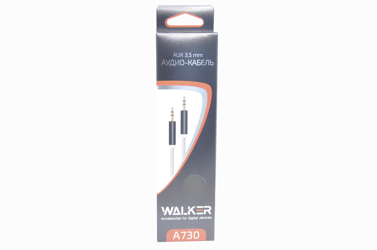 15012 Кабель Walker AUX аудио 3,5мм A-A WCA-730 в металлической обмотке 1m, черный
