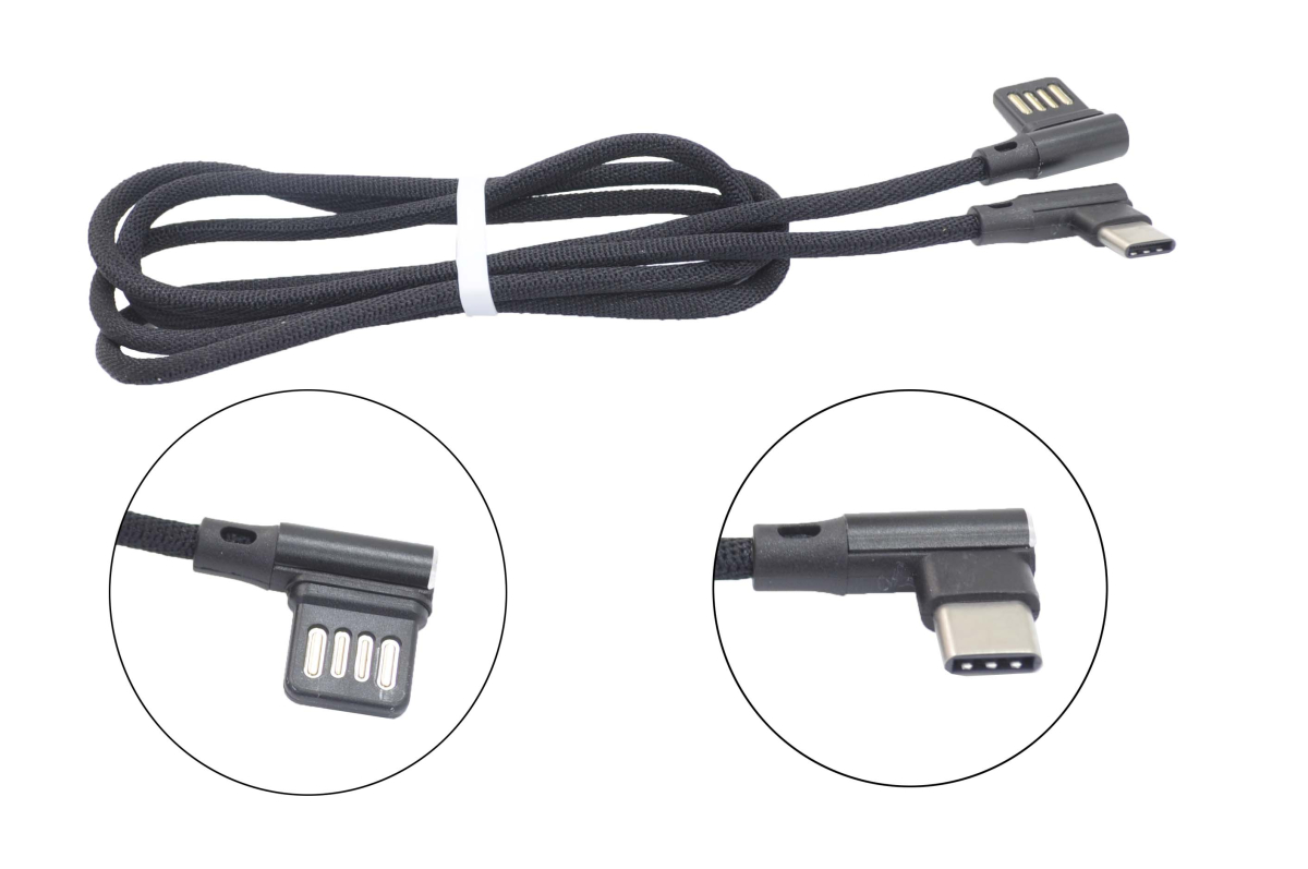 Шнур USB 2.0 type A (male) - USB type C (male), матерчатая оплетка, цв. черный, угловой разъем