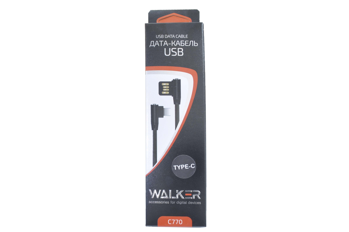 16743 Кабель Walker C770 USB - Type-С в матерчатой обмотке, угловой разъем, черный