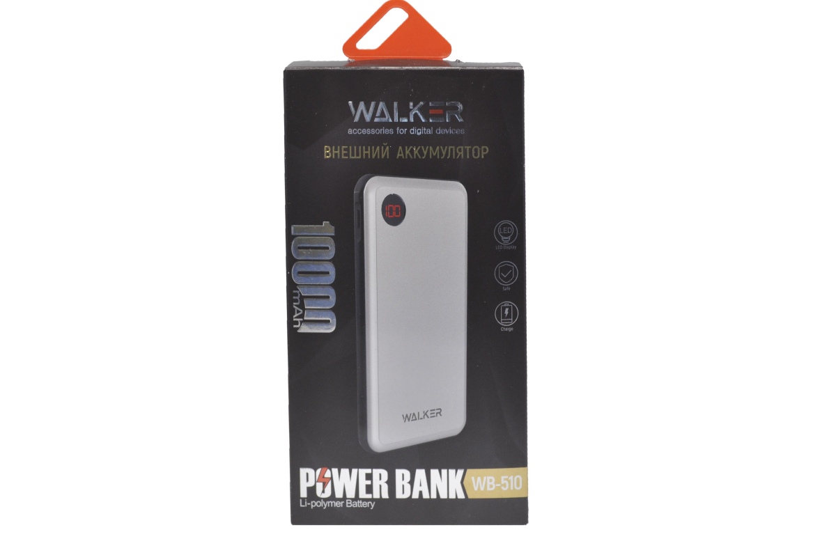 20234 Портативное зарядное устройство Walker WB-510 10000mA, 2USB, Type-C, черное