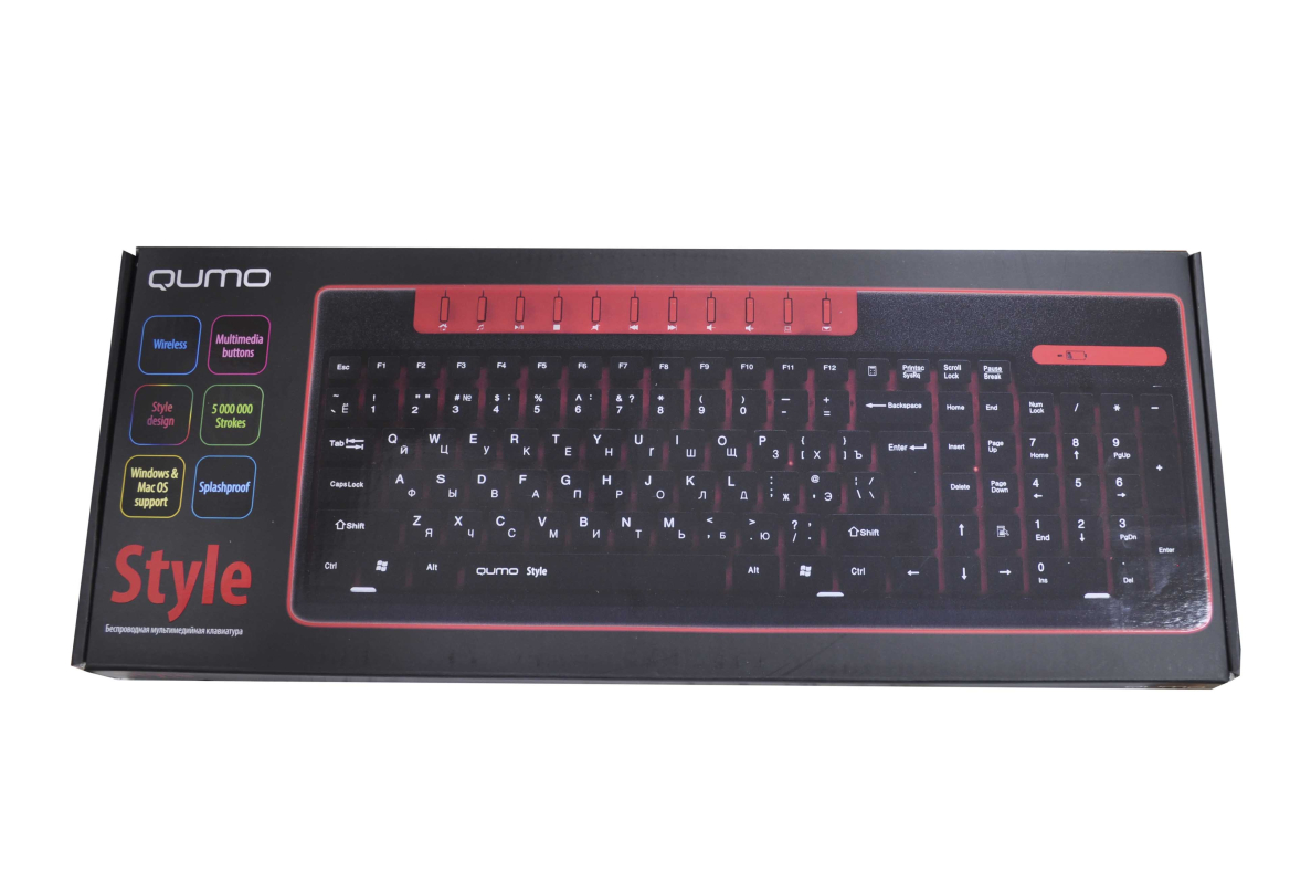 Клавиатура беспроводная Qumo Style. Тип клавиатуры мембранная. Общее количество клавиш 117. Дополнительные клавиши 11. Вид дополнительных клавиш мультимедиа. Подсветка клавиш нет. Цвет подсветки клавиш нет. Низкопрофильные клавиши есть. Бесшумные клавиши есть. Функциональность Цифровой блок есть. Ширина 431 мм. Высота 26 мм. Глубина 160 мм. Вес 420 г