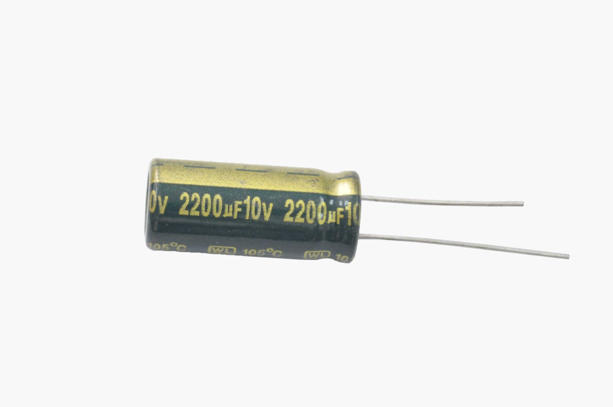 Конденсатор электролитический компьютерный Jamicon с гибкими выводами. Серия WL. Емкость:2200 мкФ. Номинальное напряжение: 10В. Макс. температура: 105С, рабочая пониженная температура – не ниже -55°С. Ток утечки 3 мкА. Допустимое отклонение емкости ±20%. Размер: 10*23. Используются в материнских платах и блоках питания