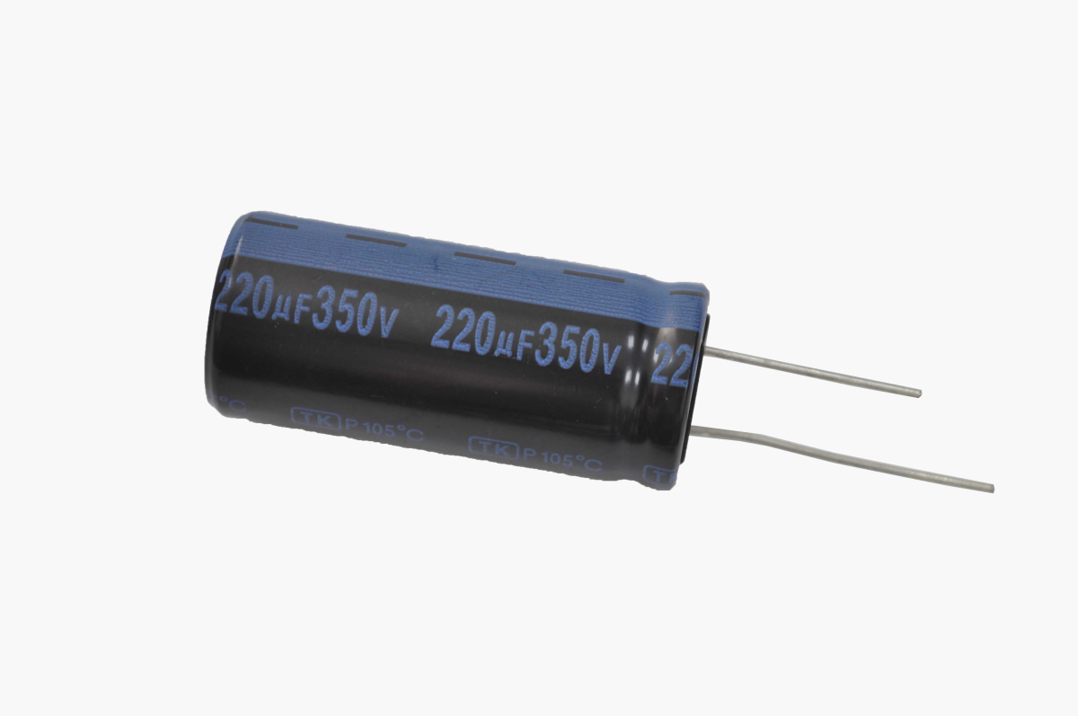 Конденсатор электролитический общего применения Jamicon с гибкими выводами. Серия ТК. Емкость: 220 мкФ. Макс. Напряжение: 350В. Температура: 105С, рабочая пониженная температура – не ниже -55°С. Ток утечки 4 мкА. Допустимое отклонение емкости ±20%. Размер: 22*50