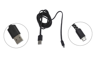 Шнур USB 2.0 type A штекер (male) - USB type В (microB) штекер (male),тканевая оплетка, длина 1,5 метра, плоский, черный