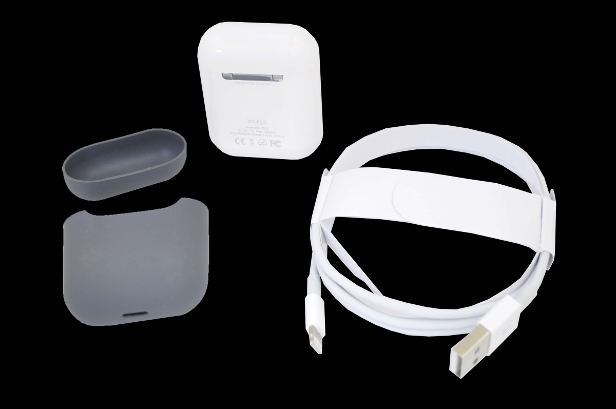 Беспроводная Bluetooth гарнитура XO F60. Интерфейс: bluetooth: 5.0. Рабочее время: в режиме разговора 3 часа / в режиме музыки 3:00. Время зарядки: кейс 1,5 часа от кабеля и 2:00 беспроводной подзарядки / наушники 40 мин. Емкость батареи: кейса 500mAh. Диаметр динамика: 10 мм. Комплектация: 2 наушники. Кейс Power bank. Кабель Apple Lightning для зарядки кейса. Чехол для кейса Power bank