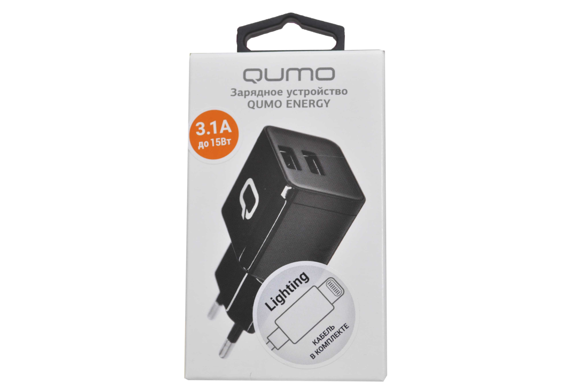 23843 Сетевое зарядное устройство Qumo Energy 2USB, 3.1A, Apple cable черный (Charger 0063)