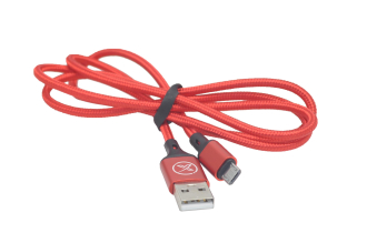 Кабель USB type A - microB, выход тока до 2А, красный, тканевая оплетка