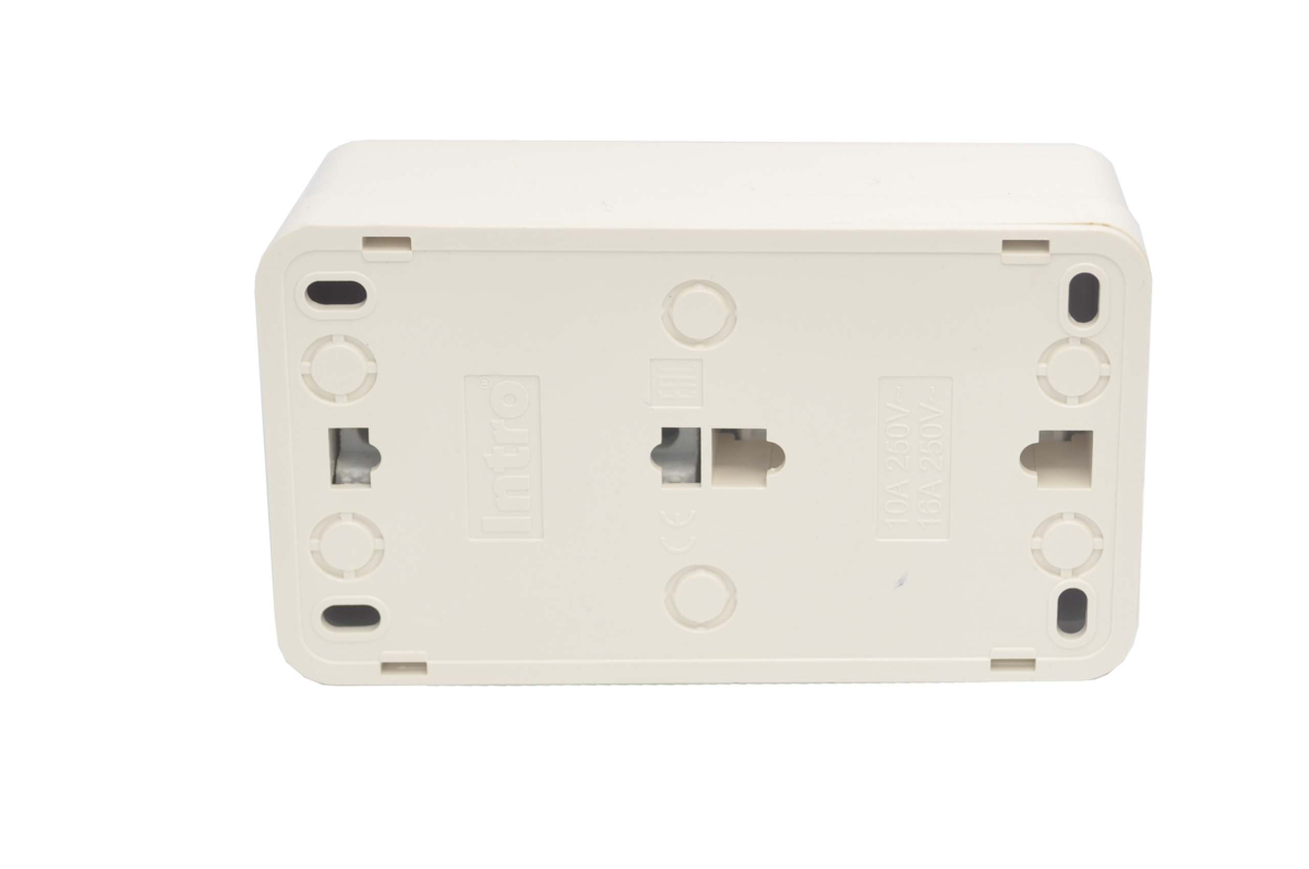 Блок розетка с выключателем горизонтальный серии Intro Quadro открытой установки цвет слоновая кость. Номинальные характеристики 10(16)А-250В. Устройство выполнено из термопласта, керамики, стали и латуни, оснащёно винтовыми зажимами.