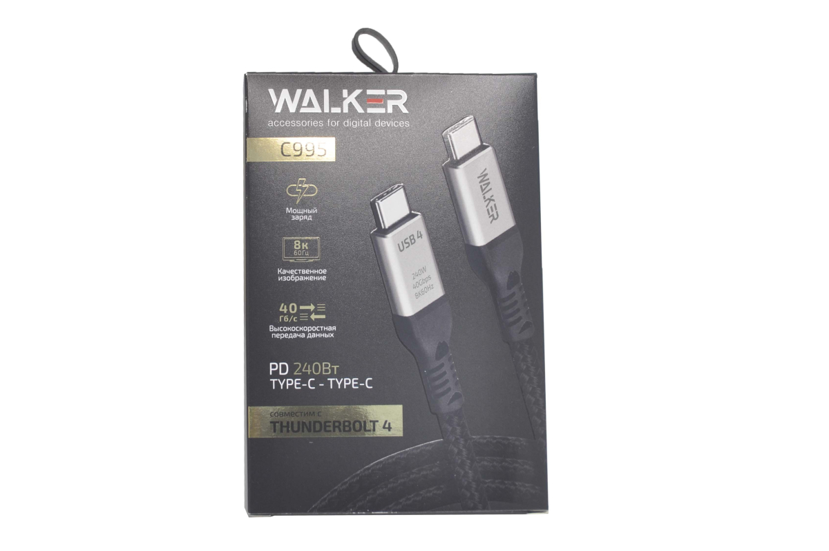 Обращаем ваше внимание на то, что информация, изображения и характеристики для 30890 Кабель Walker C995 Type-C - Type-C, совместим Thunderbolt 4, PD/зарядка ноутбуков, планшетов, iPhone нейлон, 240Watt, черный несет исключительно информационный