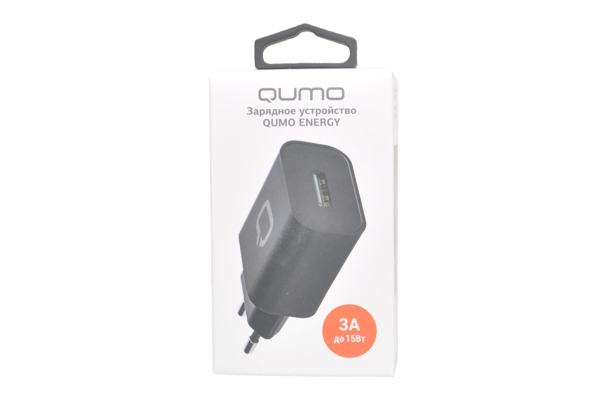 Сетевое зарядное устройство Qumo. Выходной ток 3А. Количество USB портов 1. Максимальная мощность 15 Вт, черный