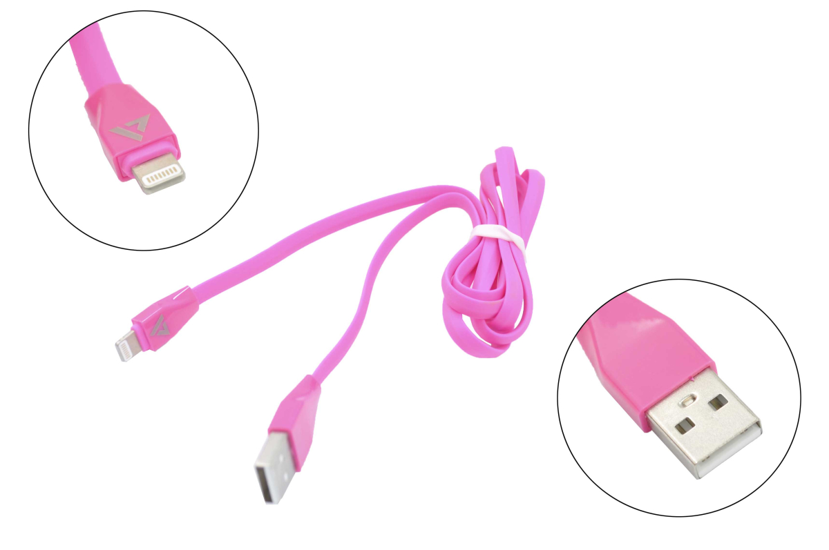 Шнур USB type B 2.0 male - Apple Lightning для iPhone, длина 1 метр, плоский, фиолетовый цвет