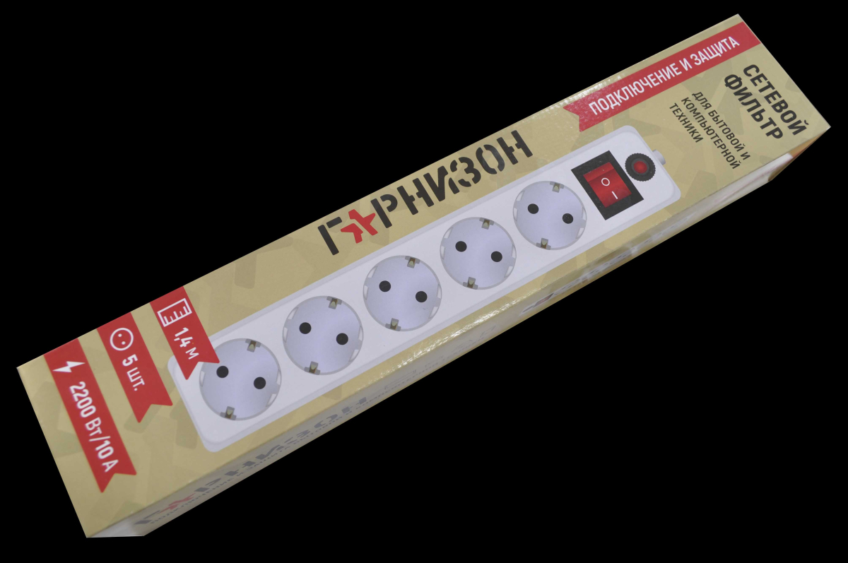 59569 Сетевой фильтр Гарнизон EHLW-5 220V 5 евророзеток 1.4м белый