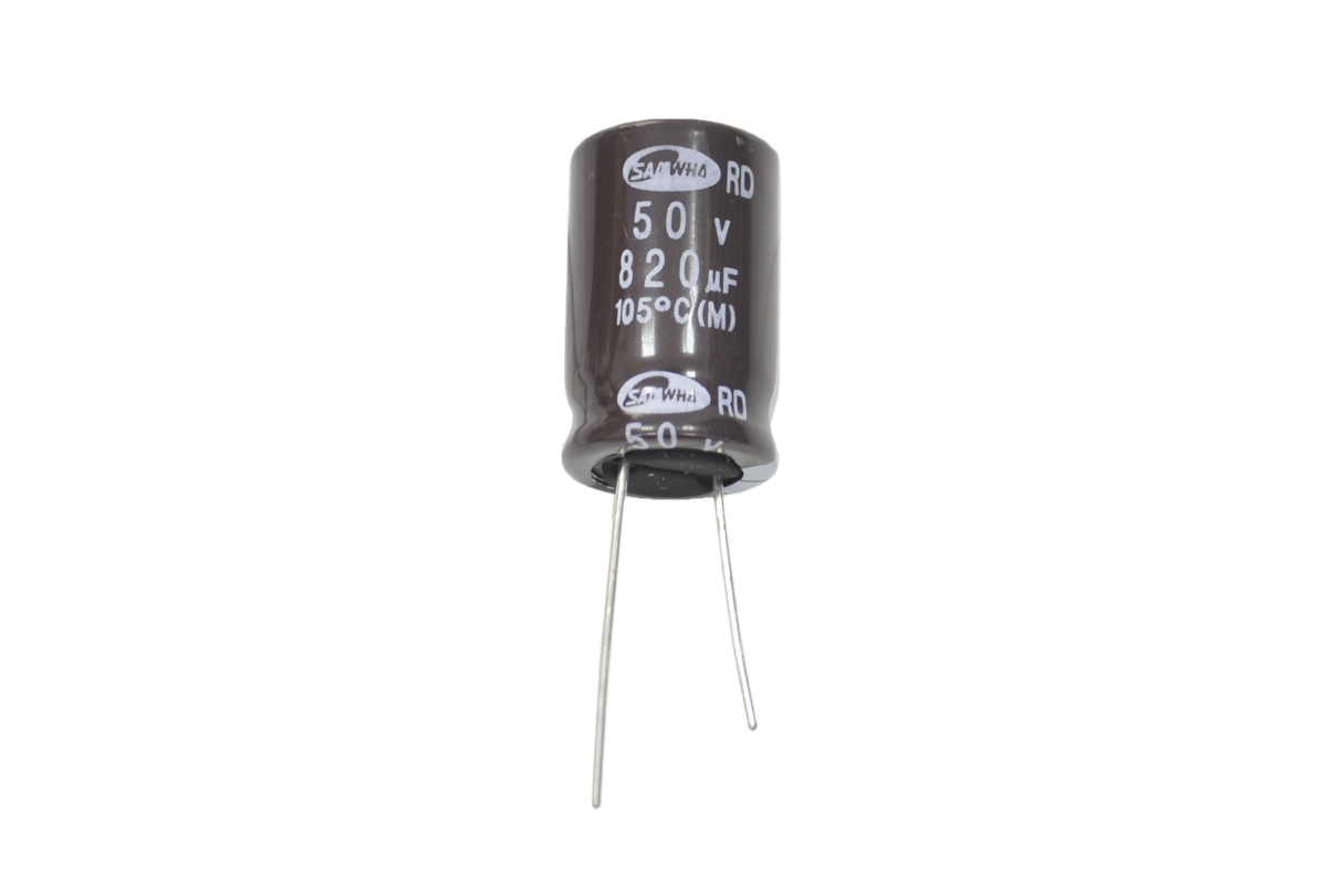 Конденсатор электролитический стандартный SAMWHA серии RD. Емкость: 820mkF. Номинальное напряжение: 50В. Допустимое отклонение ёмкости составляет ±20%. Ток утечки 4 мкА. Размер: 16*26