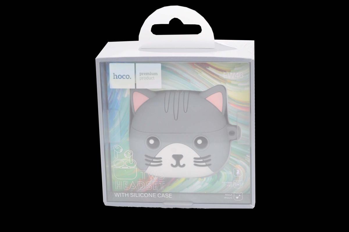 Беспроводные наушники Bluetooth Hoco EW46 TWS + чехол с ушками серый котик. Версия bluetooth: 5.3, до 10м. Диаметр динамика: 13мм. 20-20000Hz 2.4GHz. Сопротивление: 32Ом±15%. Чувствительность: 98db±3db. Поддержка протоколов: A2DP, AVRCP.Поддержка Siri (голосовое управление). Емкость батареи: 300мАч кейс и по 30мАч каждый наушник. Время до полного заряда: 1ч.Сенсорное управление. Время работы в режиме прослушивания музыки: до 4ч. Время работы в режиме разговора: до 3ч.Время работы в режиме ожидания: до 120ч. Поддержка iOS и Android. Разъем для зарядки кейса: Lightning (кабель USB - Lightning в комплекте).