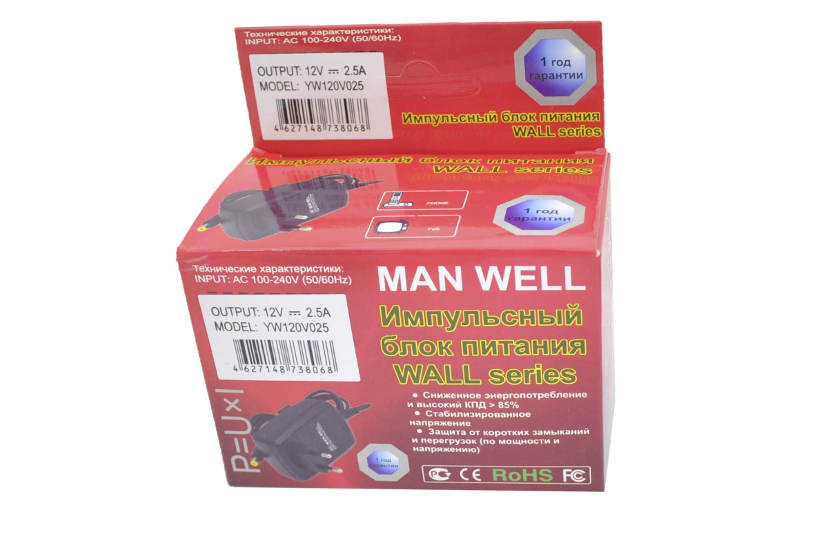 Обращаем ваше внимание на то, что информация, изображения и характеристики для Блок питания 220V/12V 2.5A Manwell YW120V025 (5.5x2.5) импульсный (адаптер) несет исключительно информационный