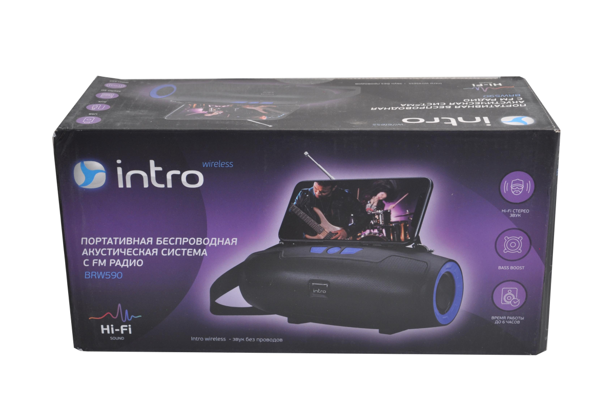 Портативная колонка Intro BRW590 bluetooth. Мощность динамиков 16 Вт.Время работы от аккумулятора 7ч. Тип аккумулятора Li-Ion. Время зарядки 3ч. Питание 5В. Емкость аккумулятора 1200mAh. Для подключения используется интерфейс Bluetooth 5.0. Наличие FM приемника