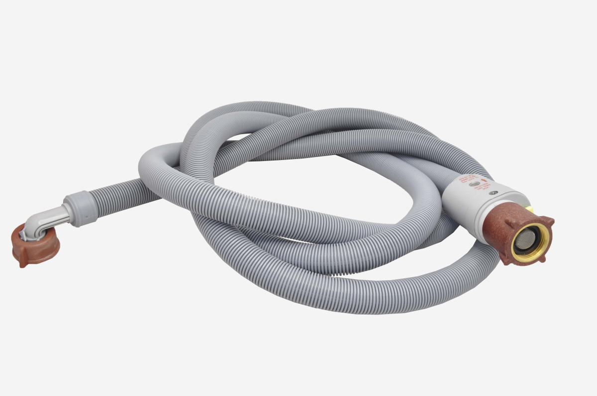 Шланг с аквастопом - двухслойный шлаг, который выдерживает давление 60 Bar и температуру 93 °C. Аксессуар полностью защищен от протечек: система защиты предполагает предотвращение протечки воды внешним шлангом при прорыве внутреннего. При этом шланг приобретает красный цвет, что сигнализирует о необходимости его замены. Длина 3 метра