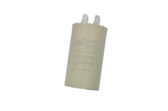 Конденсатор CBB60H пусковой постоянной ёмкости в герметизированном цилиндрическом корпусе. Номинальная емкость: 25 mkF, номинальное напряжение: 450V, допустимое отклонение ёмкости ±5%, диапазон рабочих температур -40°С…+85°С. Размеры: 40*70