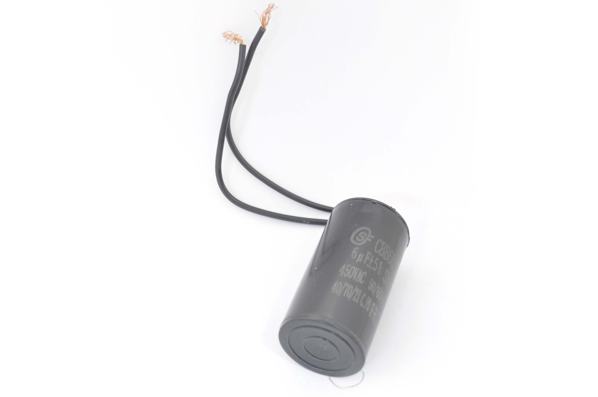 Конденсатор CBB60 пусковой постоянной ёмкости в герметизированном цилиндрическом корпусе. Номинальная емкость: 6 mkF, номинальное напряжение: 450V, допустимое отклонение ёмкости ±5%, диапазон рабочих температур -40°С…+85°С.