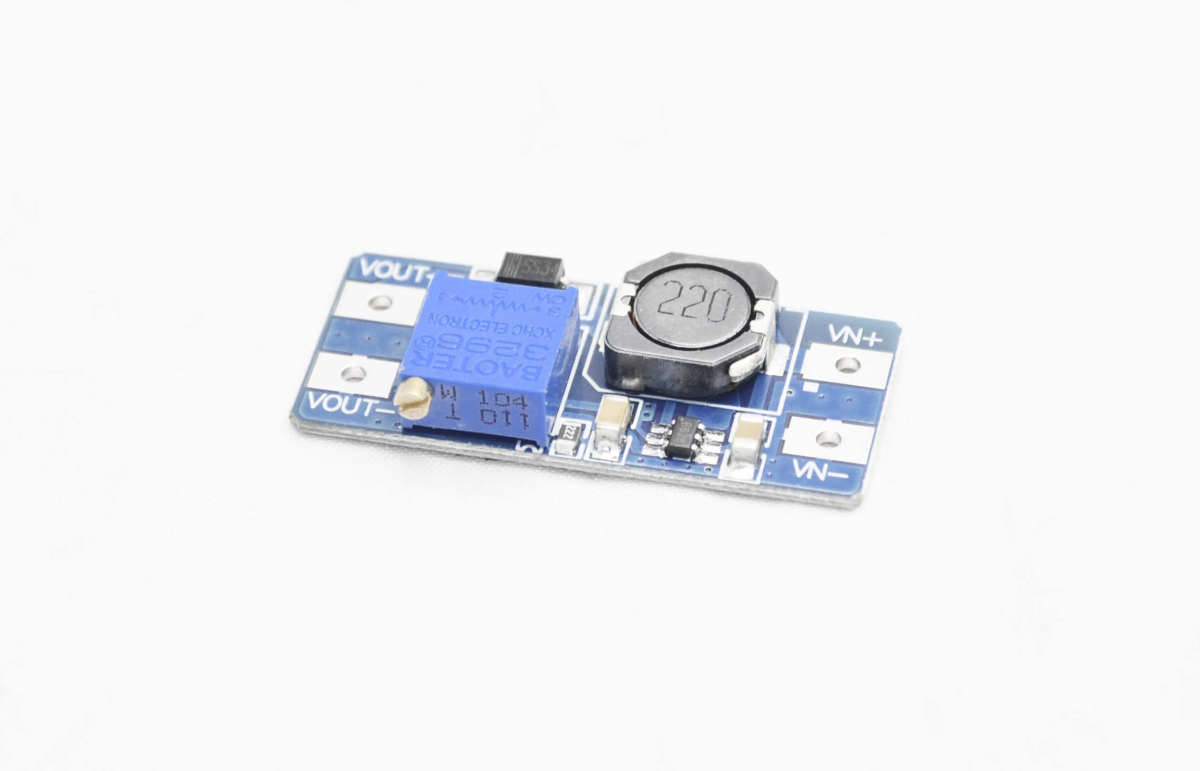 Повышающий DC-DC модуль MT3608 2A, выходное напряжение модуля регулируется подстроечным резистором. Максимальный выходной ток: 2A (рекомендуется для использования в 1А). Входное напряжение: 2 В ~ 24 В. Максимальное выходное напряжение:> 28В (рекомендуется для использования при входе в 26В). Эффективность:> 93%.