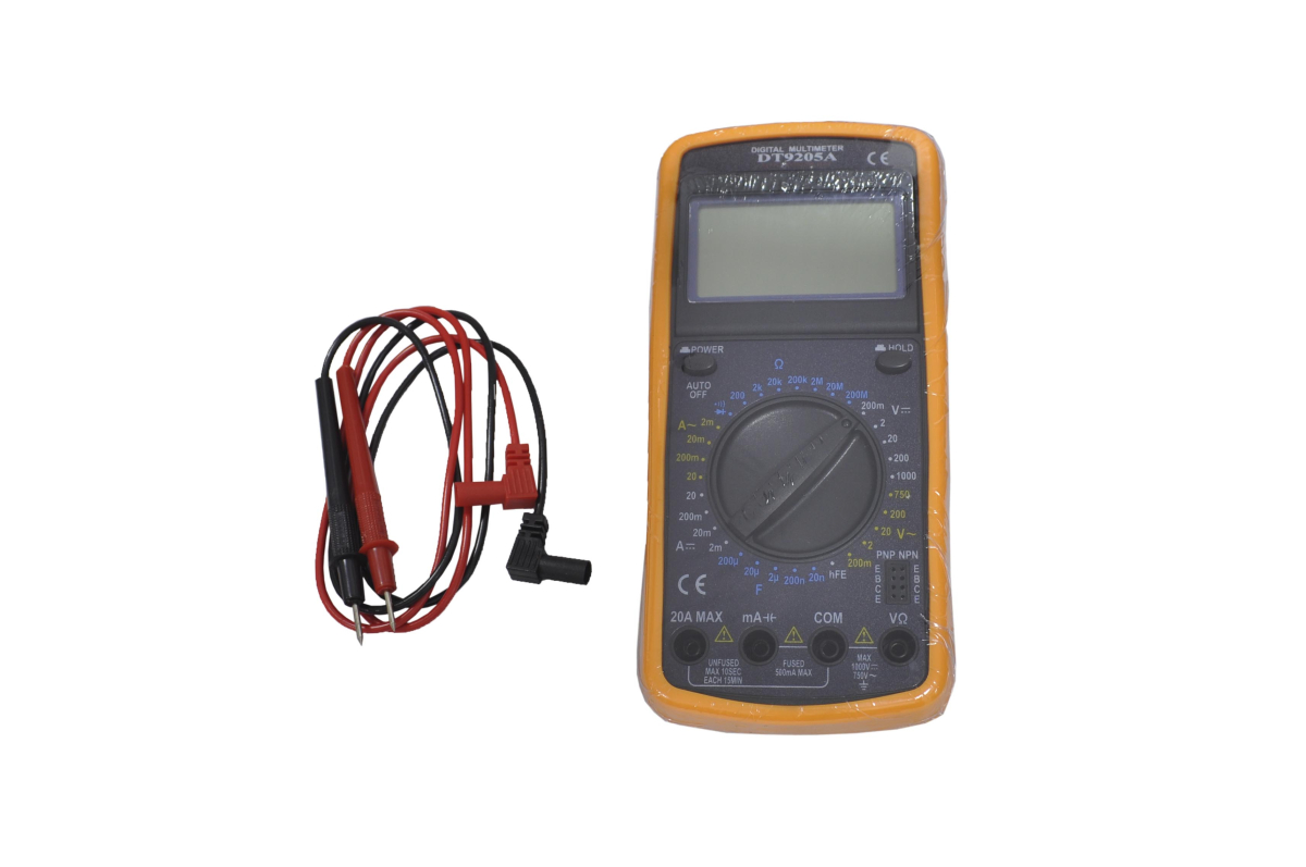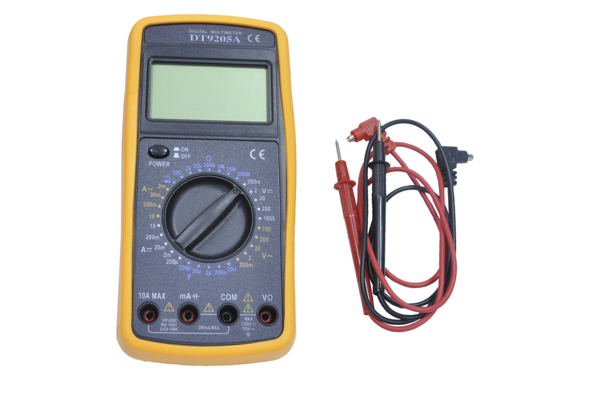 Цифровой мультиметр. Технические характеристики и функции: Постоянное напряжение, DC 200mv/2 В/20 В/200 В/1000 В ± (0.5% + 2). Переменное напряжение, AC 200mv/2 В/20 В/200 В/700 В ± (0.8% + 3). Постоянный ток, DC 2mA/20mА/200mA/10a ± (1.2% + 2). Переменный ток, АС 2mA/20mА/200mA/10a ± (1.2% + 3). Сопротивление, 200/2к/20к/200к/2М/20М/200MОм ± 1,0%; (0,8%+1). Емкость, САР 20n/200n/2мк/20мкФ/200мкФ ± 1,0%; (2,5%+5). Проверка диодов: 3V/0, 8мV. Автоматическое выключение прибора; Защита от перегрузки. Общие характеристики: Питание: 9В: 6F22. Габариты, (В×Ш×Г): 186 × 86 × 33 мм. Вес: 220г. Комплектация: Мультиметр; измерительные щупы; Инструкция.