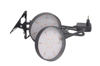 Светильник для растений на прищепке ЭРА FITO-20W-АLED красно-синего спектра.Диапазон рабочего напряжения в сети, В 220-240. Длина волны (нм)/ Мощность на данной длине волны (мВт/нм) 440:660. Индекс цветопередачи, Ra 25. Количество светодиодов, шт 48. Коэфициент пульсаций, % менее 5%. Мощность, Вт 20.Преимущества Металлическая прищепка, два плафона на гибких ножках. Пыле- влаго- защита IP20. Световой поток, Лм 380. Светоотдача, Лм/Вт 32. Фотосинтетический фотонный поток (рассчетные данные), мкмоль/с 22. Цветовая температура, К 1250