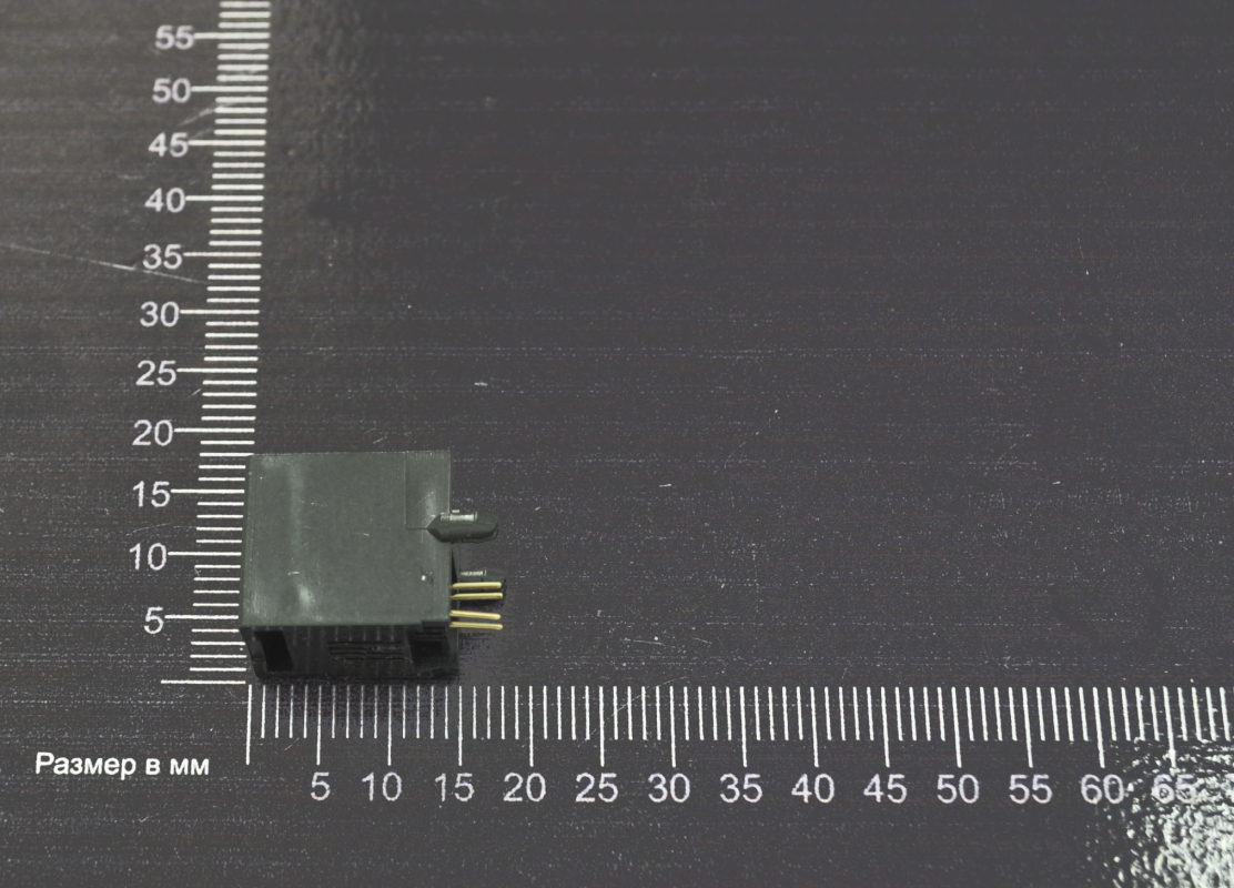 Разъем TJ- 4P4C (RJ11) гнездо на плату, угловая, материал контактов: фосфористая бронза, покрытие контактов: золото поверх никеля, число мест под контакты 4, количество контактов 4