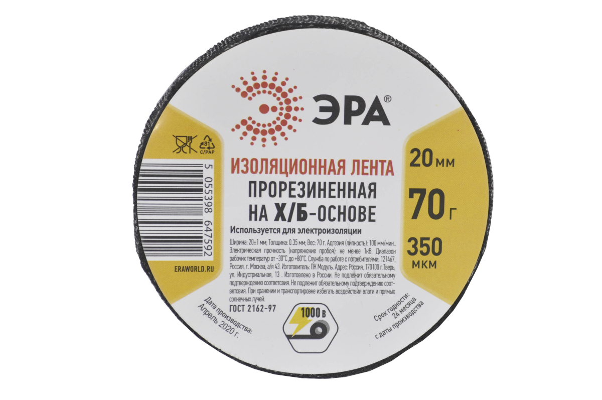 Обращаем ваше внимание на то, что информация, изображения и характеристики для ХБ-изолента Эра 20mm/350мкм, прорезиненная, 70гр. несет исключительно информационный