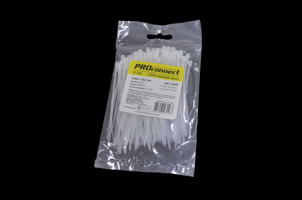 Кабельная стяжка 2.5x100 (100шт) белая 57-0100