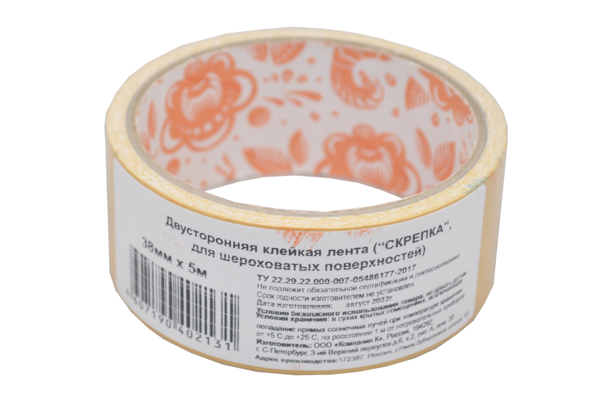 Скотч двусторонний на тканевой основе (ширина/длина 38/5) Kroll Скрепка для шероховатых поверхностей