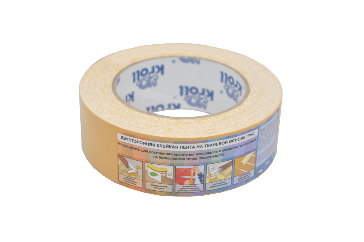 Двусторонняя клейкая лента PVC Kroll Special для склейки, монтажа, сборки, оформления и запечатывания различных изделий, на тканевой основе