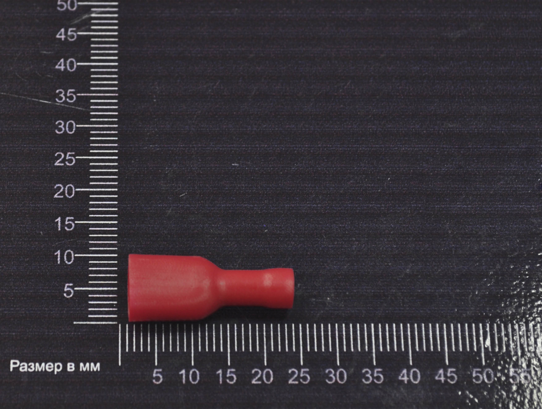 Клемма плоская, ножевая, монтаж на провод, ширина: 7.4мм, поперечное сечение провода: 0.5 - 1.5мм², толщина: 0.4мм, ток max: 10A, материал: медь, размер ответной части, мм: 0.8x6.35, тип: мама (female), цв. красный
