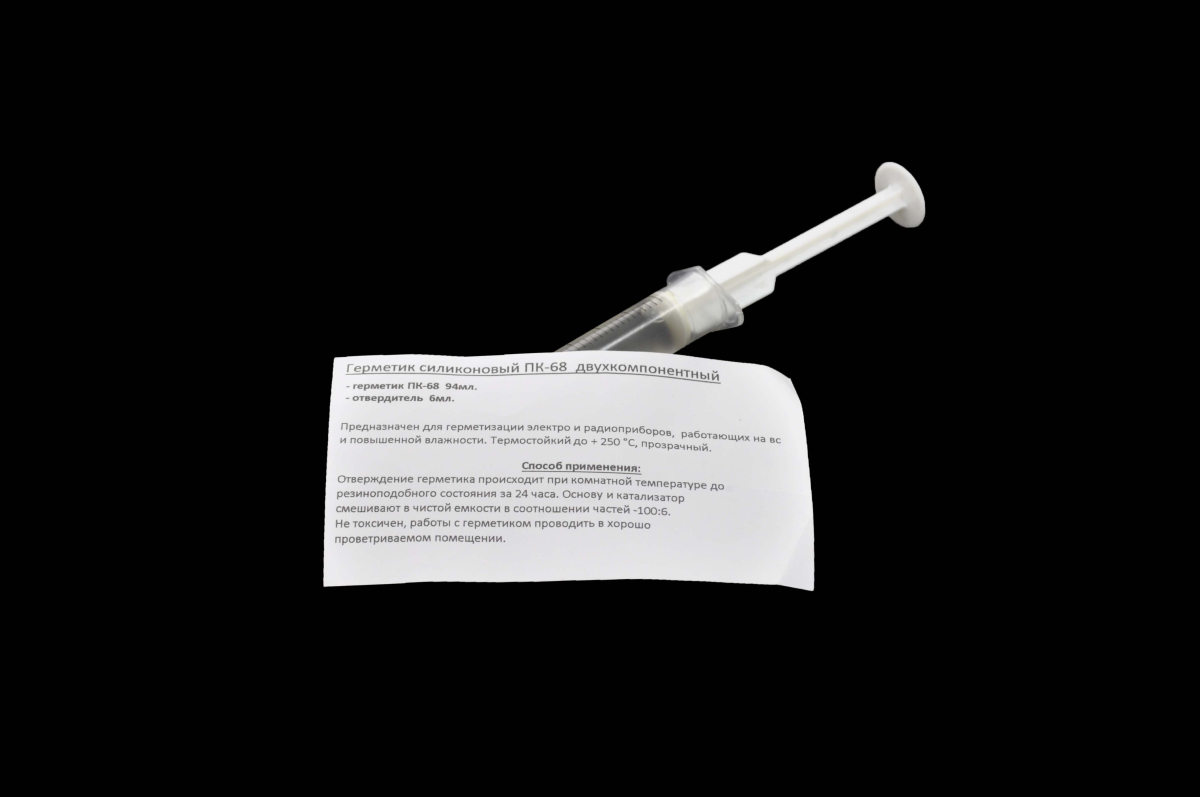 Компаунд силиконовый, прозрачный ПК-68 (двухкомпонентный) 100гр для герметизации электро- и радиоприборов, работающих в среде воздуха в условиях вибрации, повышенной влажности в температурном интервале от -60℃ до +250℃. Внешний вид: пастообразный материал, обладающий способностью при смешивании с катализатором вулканизоваться при температуре окружающей среды, переходя в резиноподобное состояние. Основу и катализатор смешивают в чистой емкости в соотношении частей -100:6. Силиконовый двухкомпонентный компаунд получен на основе низкомолекулярного диметилсилоксанового каучука. Основные характеристики: - отверждение герметика: 24 часа (при комнатной температуре);- вес продукта: 100гр;