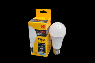 Лампа светодиодная Kodak. Тип цоколя E27. Индекс цветопередачи, Ra 80. Мощность, Вт 15. Эквивалентная мощность лампы накаливания, Вт 130. Свет нейтральный белый. Температура света, К 4000. Тип колбы A. Напряжение питания, В 220 Световой поток, Лм 1350