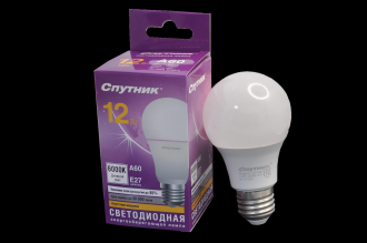 Светодиодная лампа Спутник. Мощность (Вт) 12. Напряжение 220 В. Цоколь E27. Цветовая температура 6000 К. Тип колбы A60. Форма груша. Световой поток 980 Лм. Срок службы 30000 ч. Цветность дневной белый (более 5000 К)