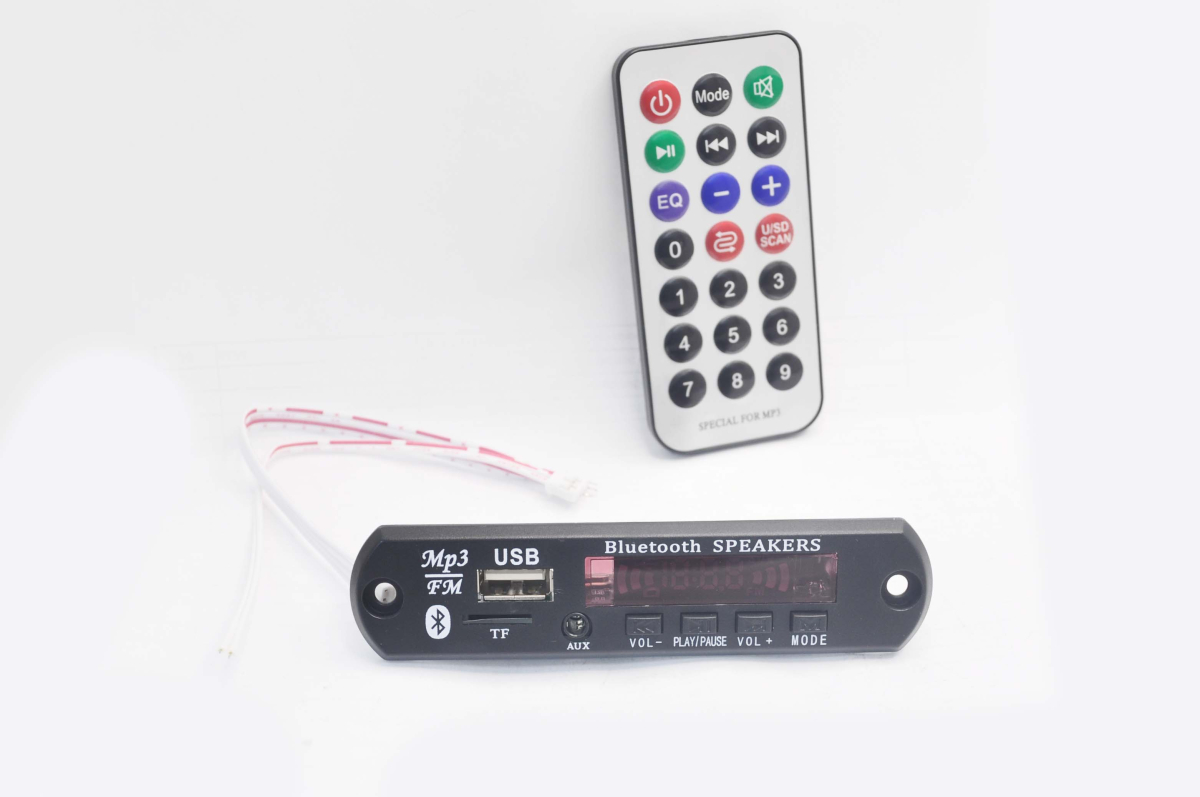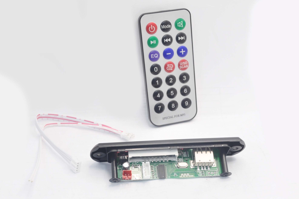 Встраиваемый модуль Блютус с декодером MP3 возможностью воспроизводить разные форматы с FLASH накопителя , SD карты, приемник в FM диапазоне , коммутация внешнего входа AUX, пульт ДУ. (необходим усилитель мощности). Параметры. Форматы APE, FLAC, MP3, WMA, WAV, MP1, MP2. Bluetooth 5,0 до 12 метров. Вход AUX (jack 3.5mm). FM Radio 87,5-108Мгц. Функции BT/fm radio/TF Card/USB/AUX/Remote. Питание DC 5V. Tf Card Support 32GB Max.
