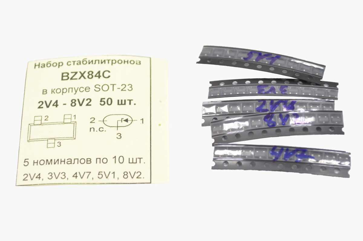 Набор стабилитронов BZX84C SOT-23 (2,4V 3,3V 4,7V 5,1V 8,2V) по 10 шт
