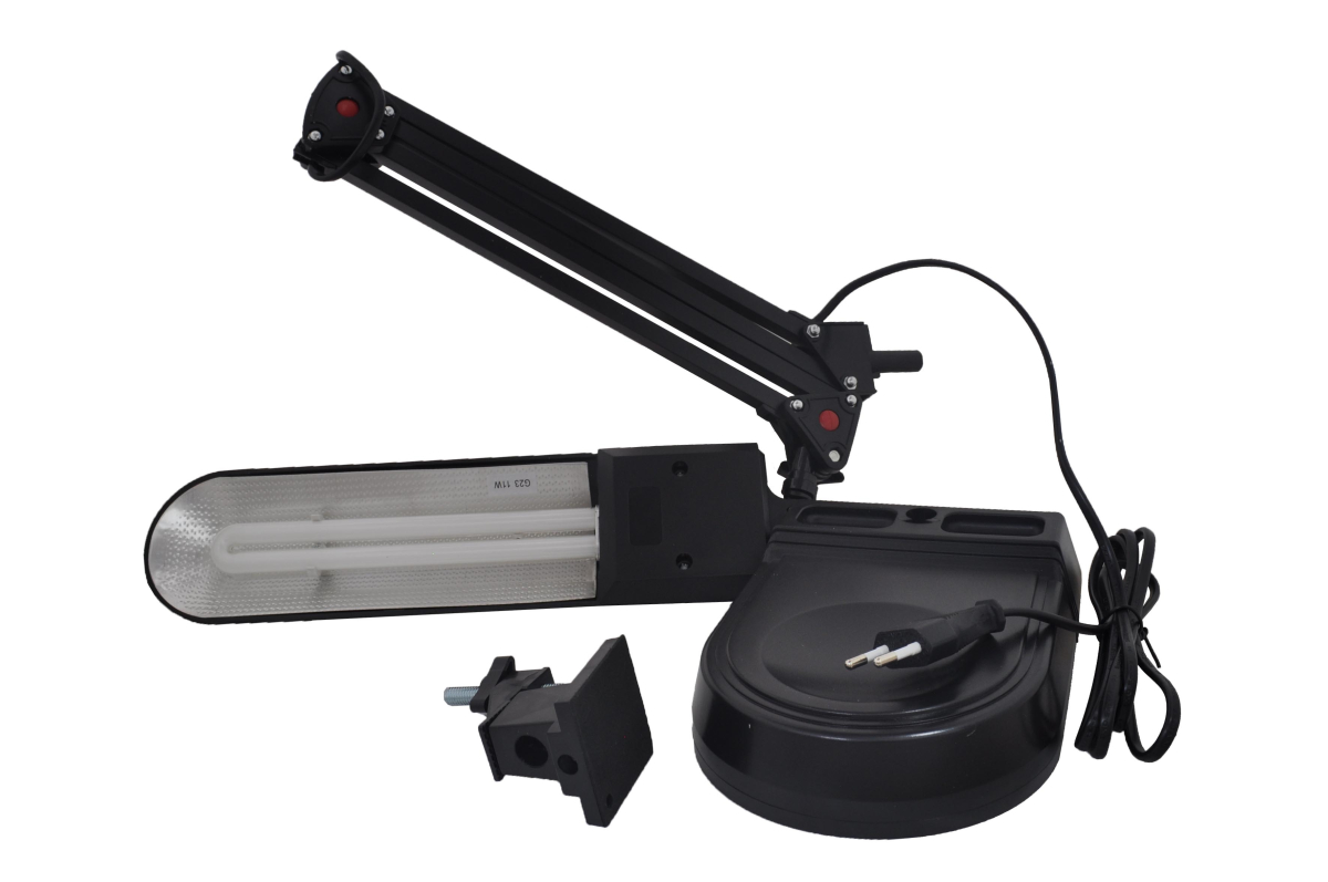 Настольный светильник ЭРА NL-202-G23-11W-BK с лампой PL на струбцине и с основанием черный. Габариты (ШхГхВ) 14 х 60 х 65 см. Диапазон рабочих температур + 5..+40°C. Класс защиты от поражения электрическим током класс II. Класс энергоэффективности A. Материал Металл / пластик. Расположение выключателя на плафоне. Степень защиты от воздействия окружающей среды, IP IP20. Тип выключателя выключатель. Тип крепления/установки Основание/струбцина. Тип лампы люминесцентная. Тип цоколя G23. Светильник предназначен для использования с энергосберегающей лампой, лампа входит к комплект. Два варианта крепления в комплекте: основание, струбцина. Высота плафона регулируется двухсекционной сгибающейся стойкой. Цвет черный. Цветовая температура 4000К.