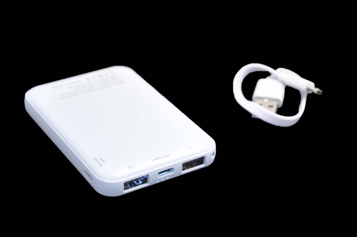 Портативное зарядное устройство. Питание. Тип аккумулятора Li-Pol; Литий - полимерный. Емкость аккумулятора 5000мАч; 5 000 мАч. Интерфейсы и разъемы. Вид разъема Micro USB; USB Type C; 2 USB - A. Количество портов USB 2 шт. Макс. Выходной ток - 2.1А