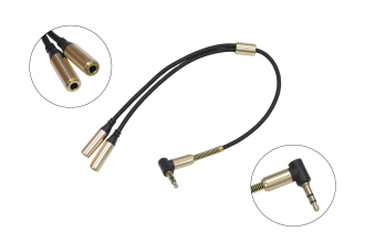 Шнур угловой 3,5мм male (штекер) стерео - 2х3,5мм female (гнездо) стерео, длина 0,3 метра